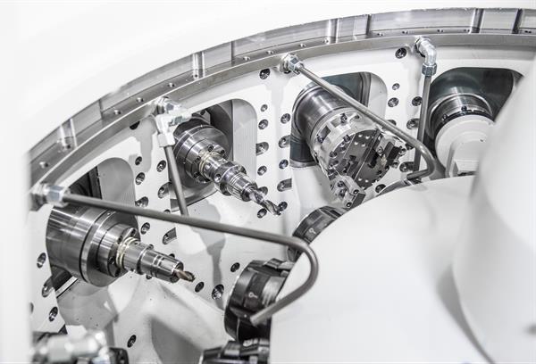 Kompromisslose Zerspanung auch von hochfesten Materialien in den Bereichen Drehen, Fräsen und Bohren zeichnet diese innovative High-End-Technologie aus. Mit 12 unabhängig angetriebenen Werkstückspindeln und bis zu 18 aufbaubaren X/Y/Z-Einheiten in horizontaler oder vertikaler Ausrichtung erfüllt das System selbst die anspruchsvollsten Anforderungen an die 6-Seiten-Bearbeitung komplexer Massenteile auf höchstem Qualitätsniveau.