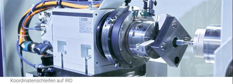 Die IRD-Baureihe (Modelle 200 und 400) ist speziell für die Bearbeitung von Umformwerkzeugen und Matrizen konzipiert. Ihre herausragende B0-Achse kann bis zu 90° schwenken und ermöglicht präzises Planschleifen von Stirnflächen. Die hochpräzise Achssteuerung erlaubt die Bearbeitung aufwendiger Innenkonturen in nur einem Zug mit einer Formscheibe. Mit einem vierfach-Spindelrevolver, einem integrierten Messtaster und exakter Synchronisierung aller Achsbewegungen, einschließlich der Werkstück-Drehachse (C0), werden Rundheitsabweichungen von 0,5 µm bei runden Konturen eingehalten. Dies ermöglicht die Bearbeitung komplexer Geometrien durch Koordinatenschleifen, inklusive präziser Erzeugung von quadratischen, rechteckigen oder freien Formen.
